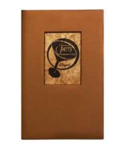 - We can make check presenters with the same material/color as your menu cover and print your logo on it to personalize it